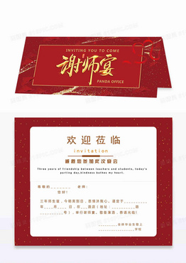简约花卉红色谢师宴邀请函艺术字