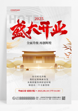 白底红字毛笔字风2025民宿酒店盛大开业邀请海报