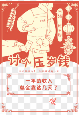 卡通手绘新年牛牛收到压岁钱免抠元素