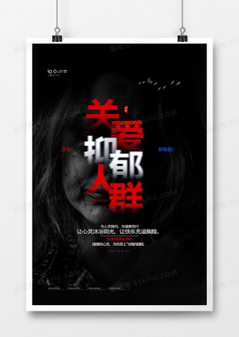 黑色压抑关爱抑郁症人群抑郁症海报设计