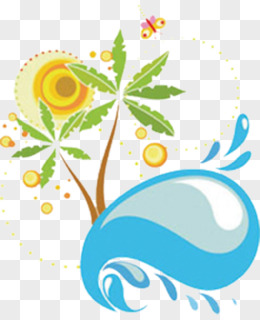 黄色帽子里装有海浪椰树果汁的海报素材设计