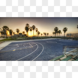 南方热带椰树篮球场