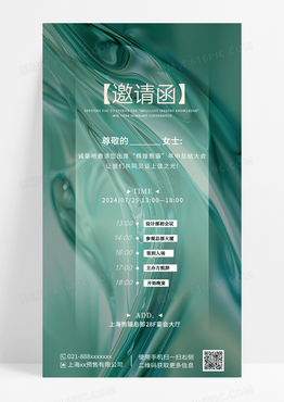 绿色液体流动轻奢邀请函海报
