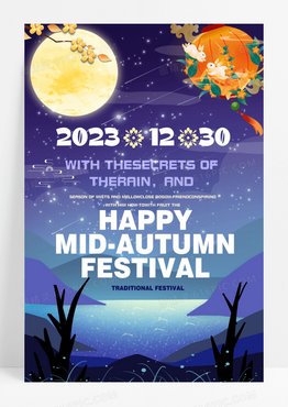 蓝色的夜晚月亮灯笼桂花的氛围美丽的中秋节海报