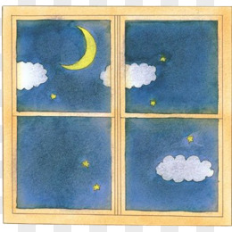卡通手绘窗外夜色风景素材