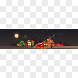 元宵节夜晚屋顶赏灯手绘卡通元素