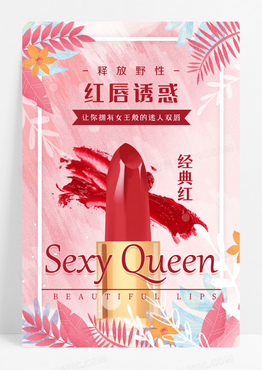 释放野性红唇诱惑口红化妆品产品宣传海报设计