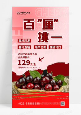 红色渐变有机百厘挑一车厘子促销活动海报