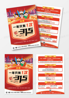 红色喜庆卡通一年只有一次315促销活动宣传单315宣传单