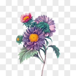 手绘卡通两朵马兰花免抠元素