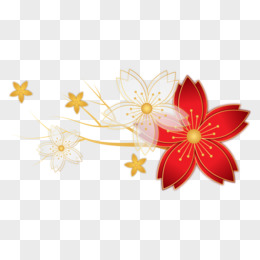 金边国潮剪纸风花朵免抠装饰元素