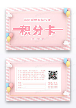 淡粉色背景商场服装行业衣服女装积分卡