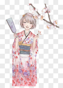 樱花下,穿着和服的少女