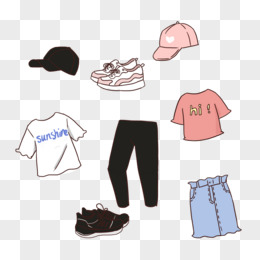 一组卡通手绘童装穿搭套图免抠元素