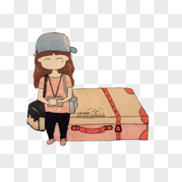 手绘卡通一个人旅游旅行免抠元素