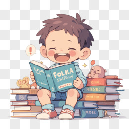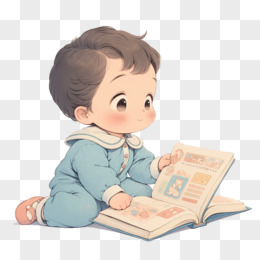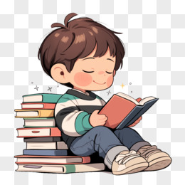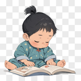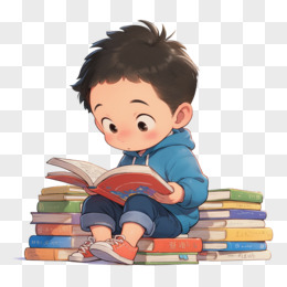 卡通风开学季一个小孩在看书免抠元素