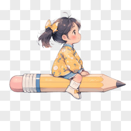 卡通风开学季一个小女孩骑着铅笔飞行免抠元素