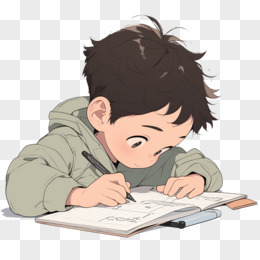 卡通风开学季一个小学生在写字免抠元素