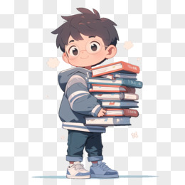 卡通风开学季一个中学生抱着一摞书免抠元素