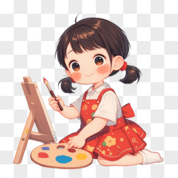 卡通一个小女孩在画板上画画免抠元素
