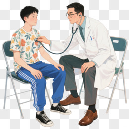 插画医生在用听诊器给一个男学生听诊免抠元素