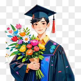 一个穿着学士服的大学生手捧着鲜花的免抠元素