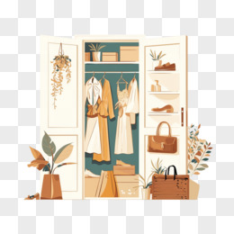 手绘扁平风矢量衣帽间陈列素材
