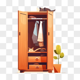 手绘卧室木质衣柜免抠元素