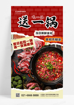 红色简约火锅吃一锅送一锅火锅食材红色简约海报海报