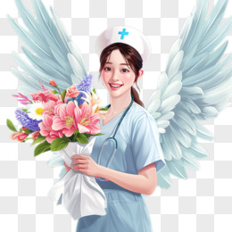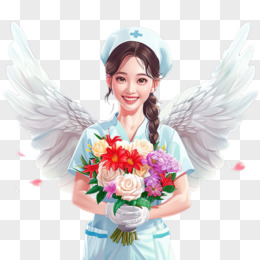 白衣天使护士抱着一束鲜花开心的笑卡通元素