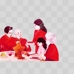 手绘卡通一家人团圆吃年夜饭免抠元素