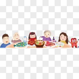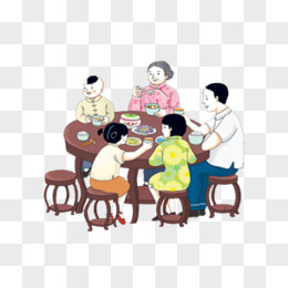 手绘插画风欢庆团圆吃团圆饭场景元素