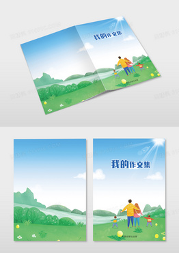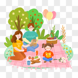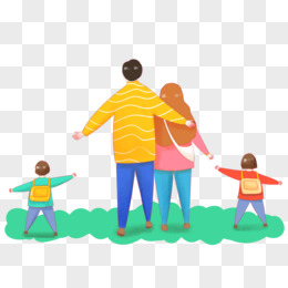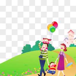 手绘插画风一家四口亲子背包出行游玩其乐融融元素