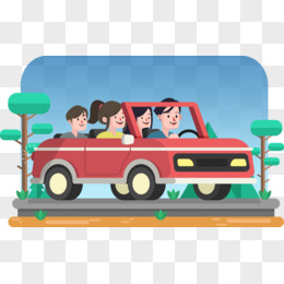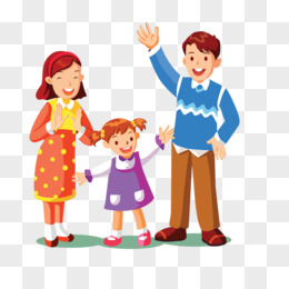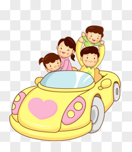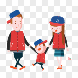 卡通手绘一家人欢欢喜喜回家过年免抠元素