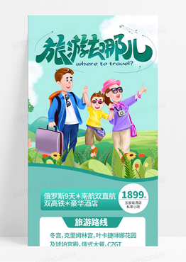 蓝色卡通旅游去哪玩节假日旅行出行旅行社促销活动长图