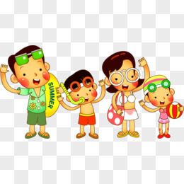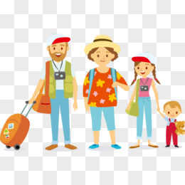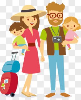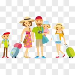 卡通手绘一家人欢欢喜喜回家过年免抠元素