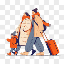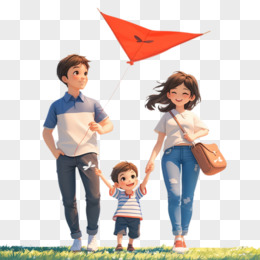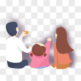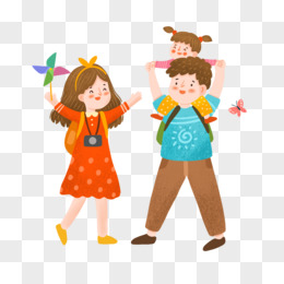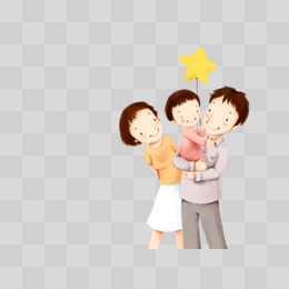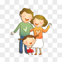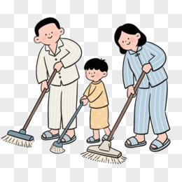 手绘卡通一家三口准备打扫卫生扫地免抠元素