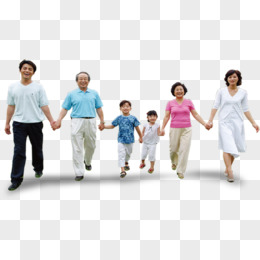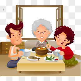卡通风一家三口探望躺在床上的老爷爷免抠元素