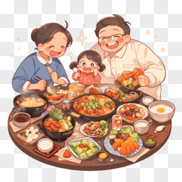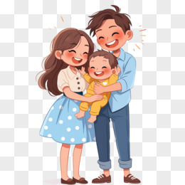 卡通一家三口打扫卫生擦玻璃扫地免抠元素