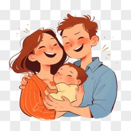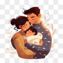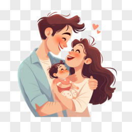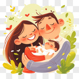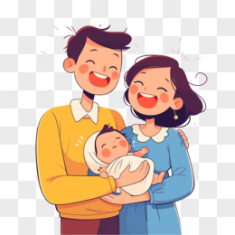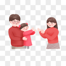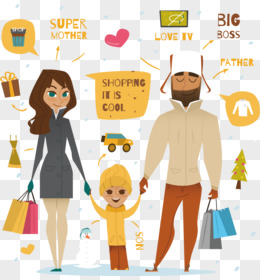 一家人手拿礼盒节日喜庆人物形象免抠元素