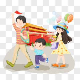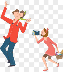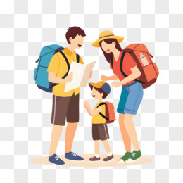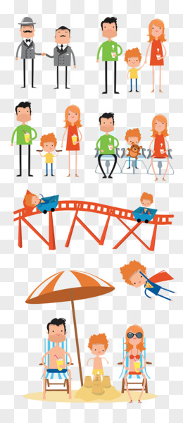 插画一对年轻夫妇抱着孩子拉着行李箱站在高铁列车旁免抠元素