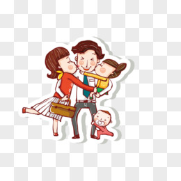 手绘卡通下雨天爸爸给妈妈孩子们撑伞免抠元素
