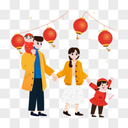 手绘兔年兔子一家四口庆祝新春元素之父女
