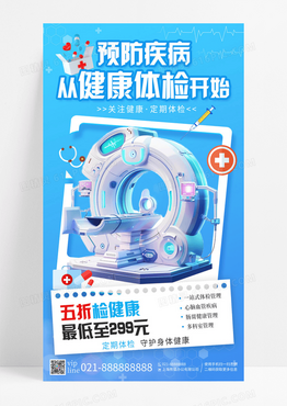 蓝色插画医疗健康体检活动优惠手机宣传海报