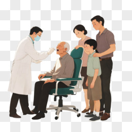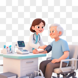插画医生在给一个老爷爷量血压免抠元素