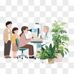 插画医生在给一个女人做检查视力免抠元素
