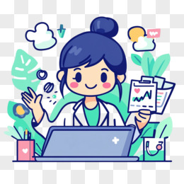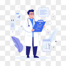 插画两个医生讨论屏幕的医疗数据免抠元素