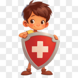 手绘风格男孩抱着盾牌医疗的免抠元素