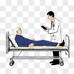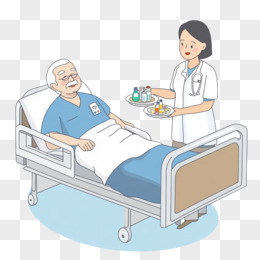 插画躺在病床上的老人和拿着药的医生免抠元素