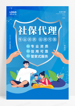 蓝色社保代理专业资质信用可靠缴纳社保家安康养老医疗人无忧养老保险社保海报